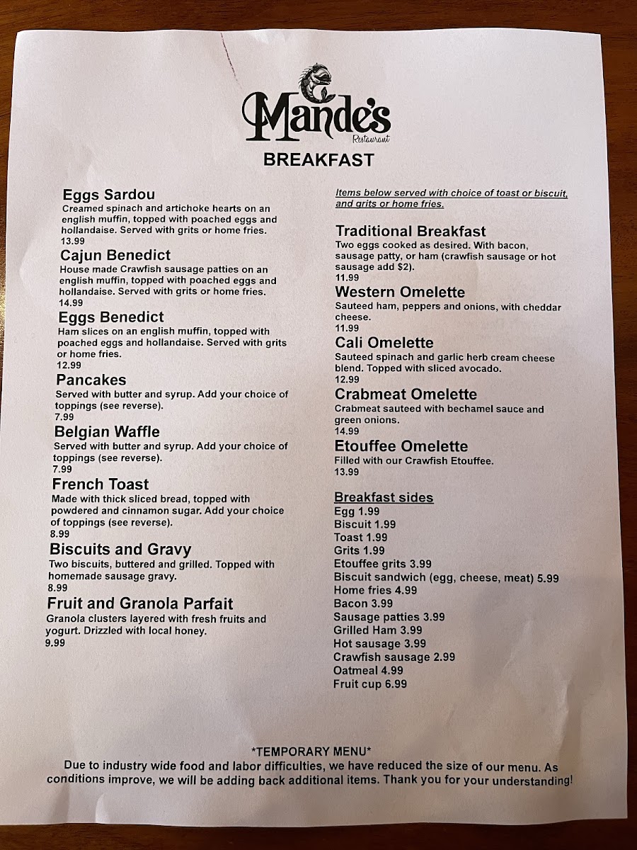 Welcome to Mande's Restaurant, a culinary gem nestled in the heart of Mandeville, Louisiana. Located at 340 N Causeway Blvd, this inviting eatery blends a cozy atmosphere with a unique decor that enhances your dining experience.